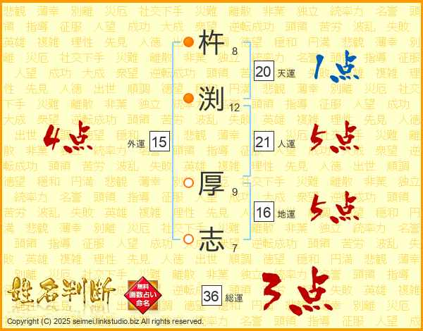 杵(8画)渕(12画) 厚(9画)志(7画)