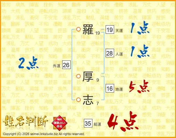 羅厚志さんの総運は35画の4点!