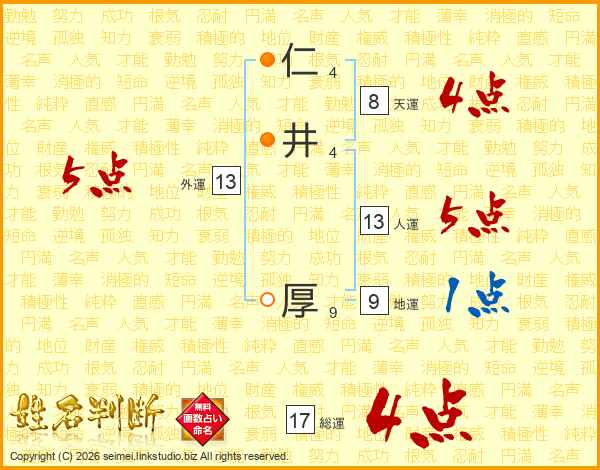 仁井厚さんの人運は13画の5点!