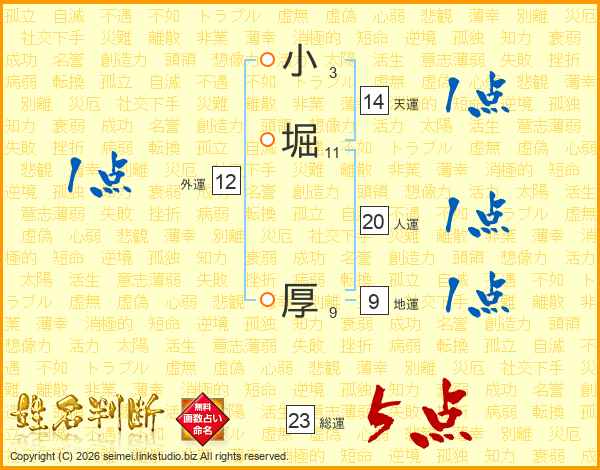 小堀厚さんの総運は23画の5点!