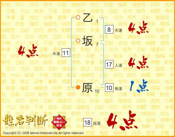 乙坂原さんの総運は18画の4点!