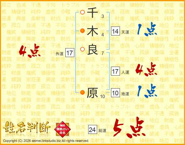 千木良原さんの総運は24画の5点!