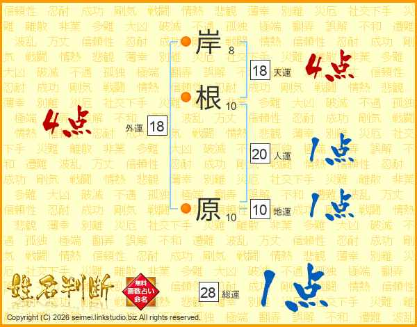 岸根原さんの天運は18画の4点!