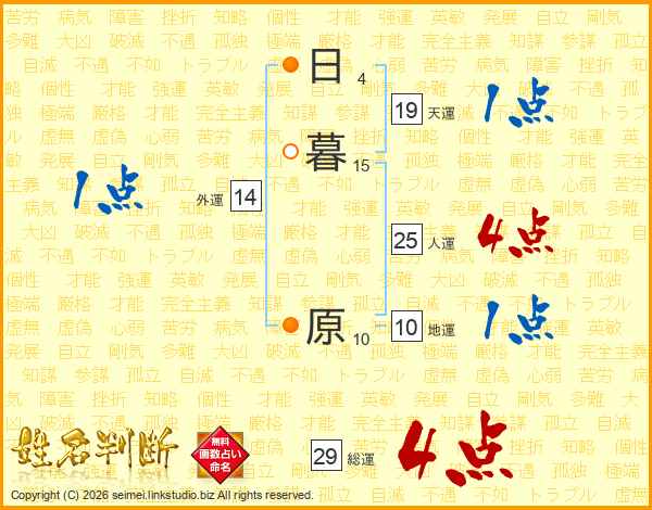 日暮原さんの総運は29画の4点!