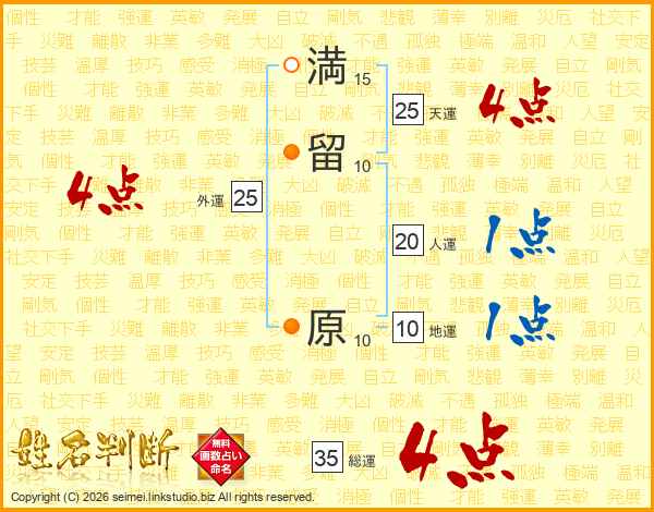 満留原さんの総運は35画の4点!