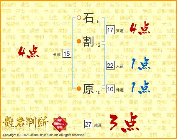 石割原さんの天運は17画の4点!