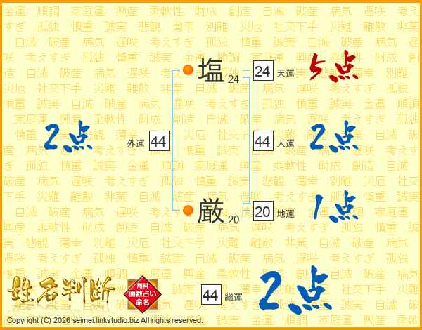 塩厳さんの総運は44画の2点!