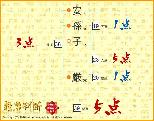 安孫子厳さんの総運は39画の5点!