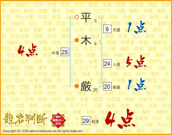 平木厳さんの総運は29画の4点!