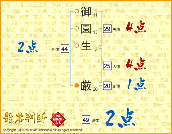 御園生厳さんの総運は49画の2点!