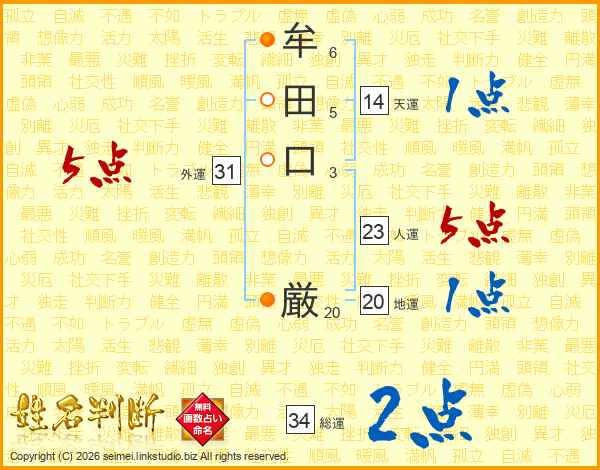 牟田口厳さんの天運は14画の1点!