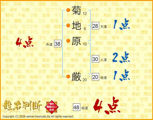 菊地原厳さんの総運は48画の4点!