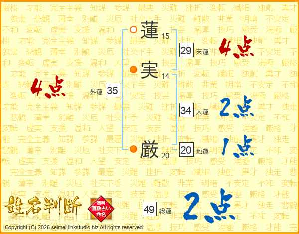 蓮実厳さんの天運は29画の4点!