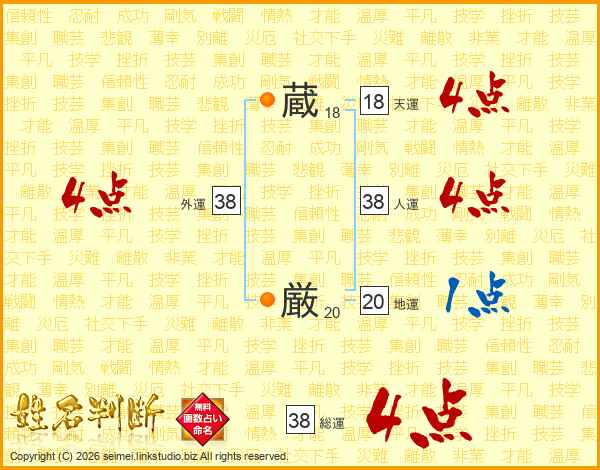 蔵厳さんの人運は38画の4点!