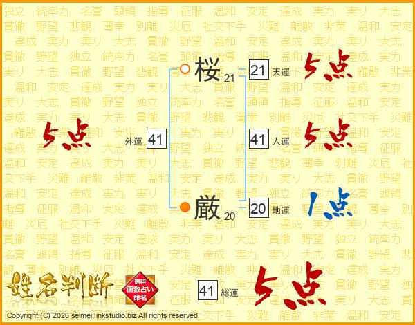 桜厳さんの総運は41画の5点!
