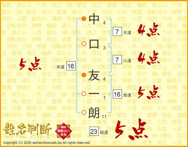 中口友一朗さんの外運は16画の5点!
