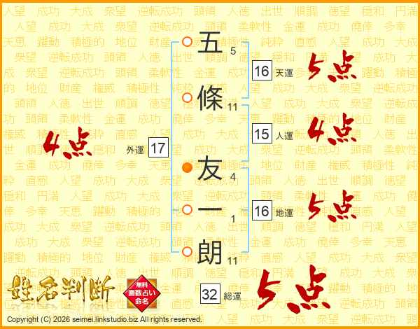 五條友一朗さんの総運は32画の5点!