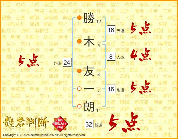 勝木友一朗さんの総運は32画の5点!