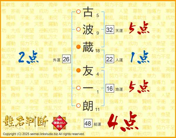 古波蔵友一朗さんの総運は48画の4点!