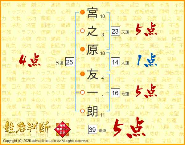 宮(10画)之(3画)原(10画) 友(4画)一(1画)朗(11画)