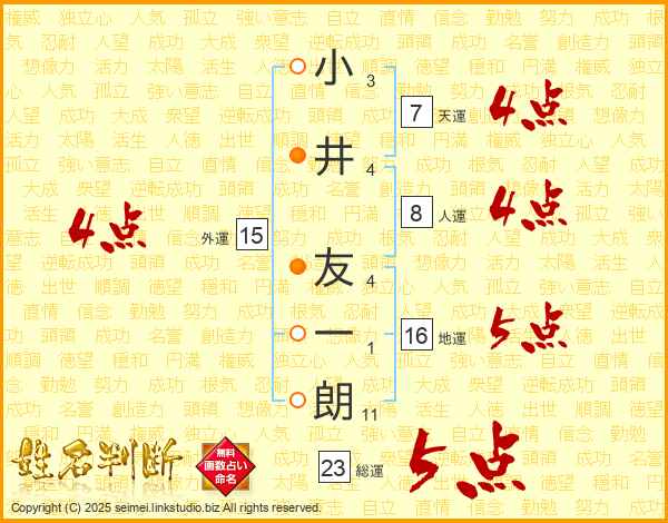 小(3画)井(4画) 友(4画)一(1画)朗(11画)