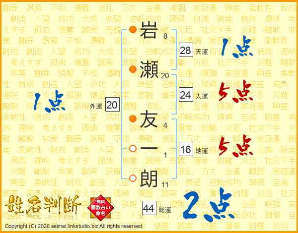 岩瀬友一朗さんの総運は44画の2点!