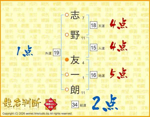 志野友一朗さんの天運は18画の4点!