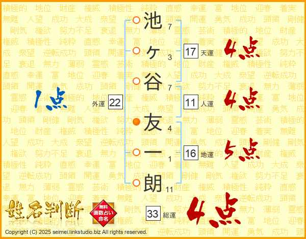 池ヶ谷友一朗さんの天運は17画の4点!
