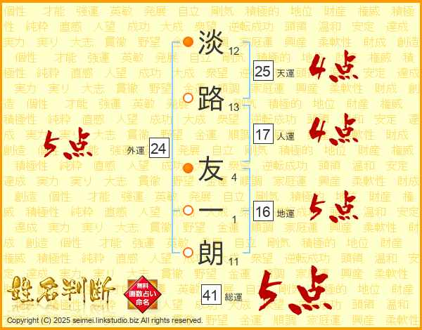 淡路友一朗さんの天運は25画の4点!