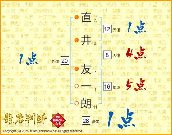 直井友一朗さんの総運は28画の1点!