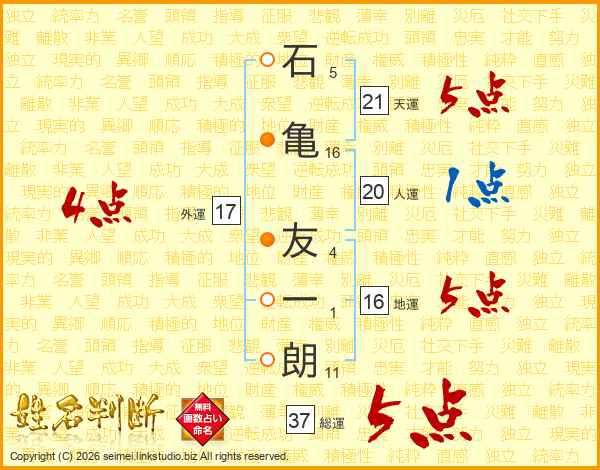 石亀友一朗さんの天運は21画の5点!