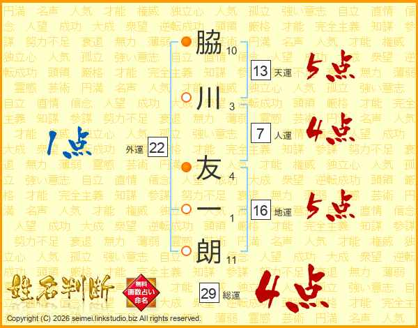 脇川友一朗さんの天運は13画の5点!