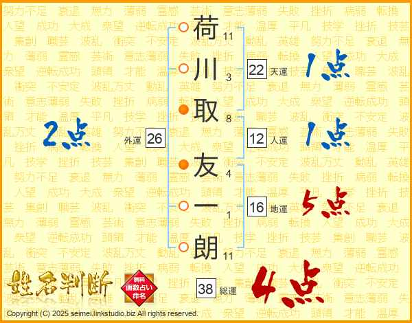 荷川取友一朗さんの総運は38画の4点!