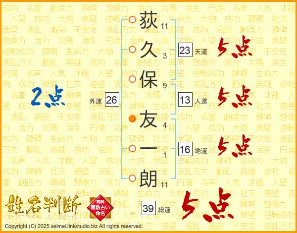 荻久保友一朗さんの天運は23画の5点!