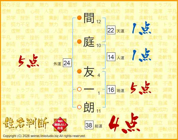 間庭友一朗さんの総運は38画の4点!