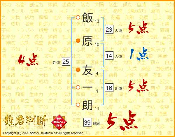 飯原友一朗さんの総運は39画の5点!