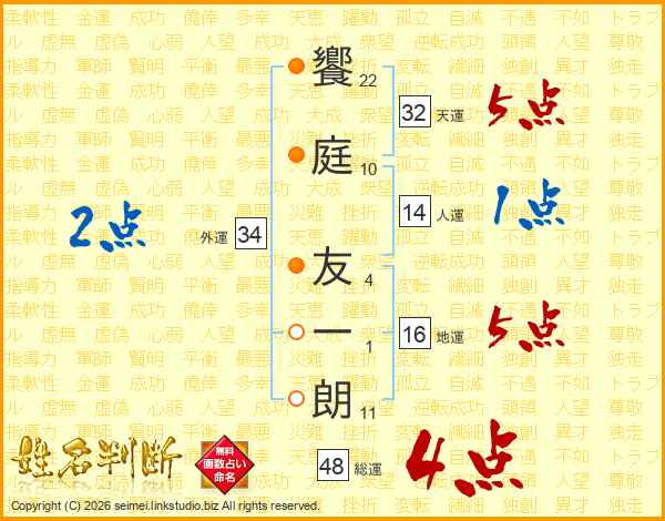饗庭友一朗さんの総運は48画の4点!
