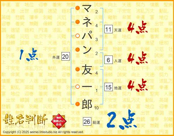 マネパン友一郎さんの天運は11画の4点!