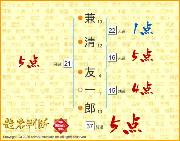 兼清友一郎さんの総運は37画の5点!