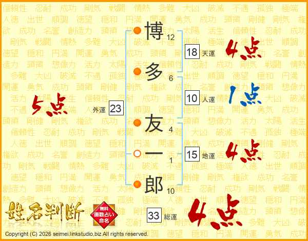 博多友一郎さんの総運は33画の4点!