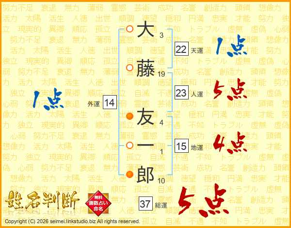 大藤友一郎さんの総運は37画の5点!