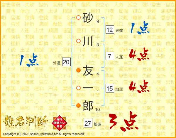 砂川友一郎さんの人運は7画の4点!