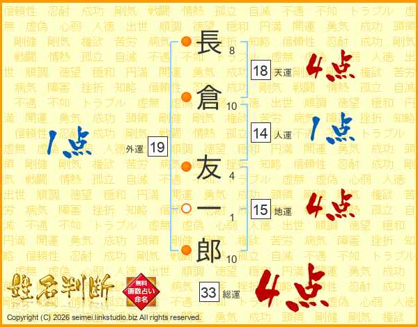 長倉友一郎さんの総運は33画の4点!