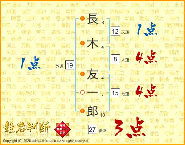 長(8画)木(4画) 友(4画)一(1画)郎(10画)