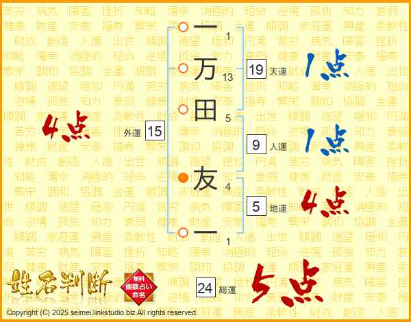 一万田友一さんの総運は24画の5点!