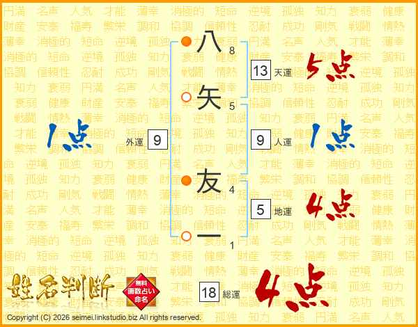 八矢友一さんの総運は18画の4点!