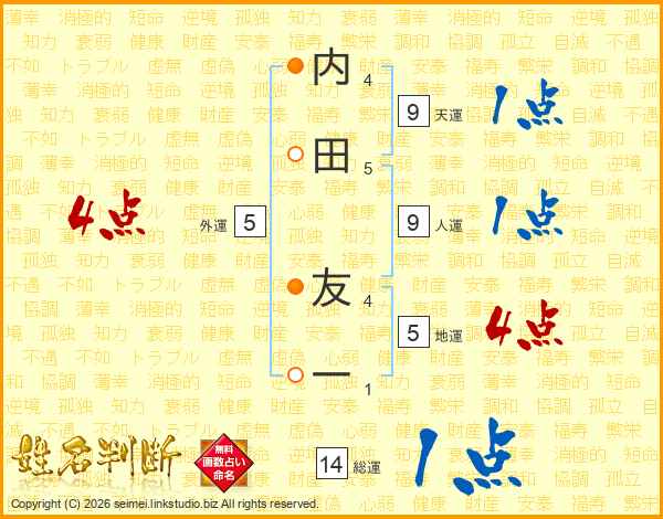内田友一さんの総運は14画の1点!