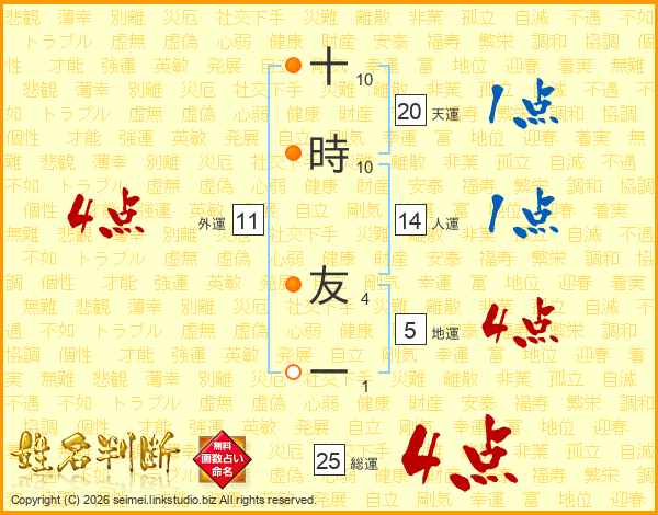 十時友一さんの総運は25画の4点!