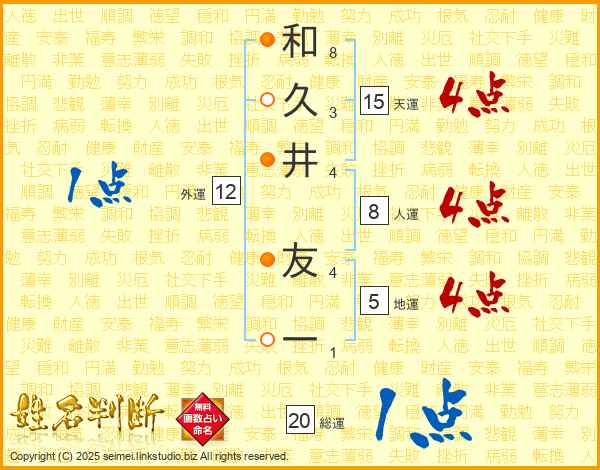 和(8画)久(3画)井(4画) 友(4画)一(1画)