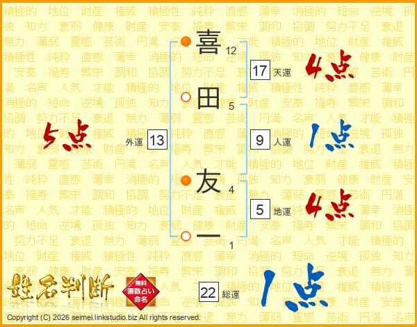 喜田友一さんの天運は17画の4点!